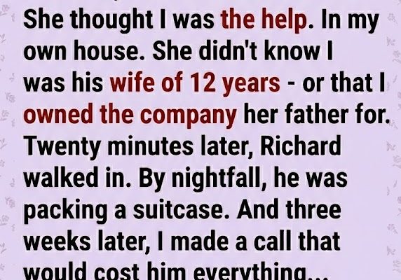 My husband’s mistress rang my doorbell, handed me her coat, and said, ‘Tell Richard I’m here.’ She thought I was the help. In my own house. She didn’t know I was his wife of 12 years — or that I owned the company her father worked for. Twenty minutes later, Richard walked in. By nightfall, he was packing a suitcase. And three weeks later, I made a call that would cost him everything…
