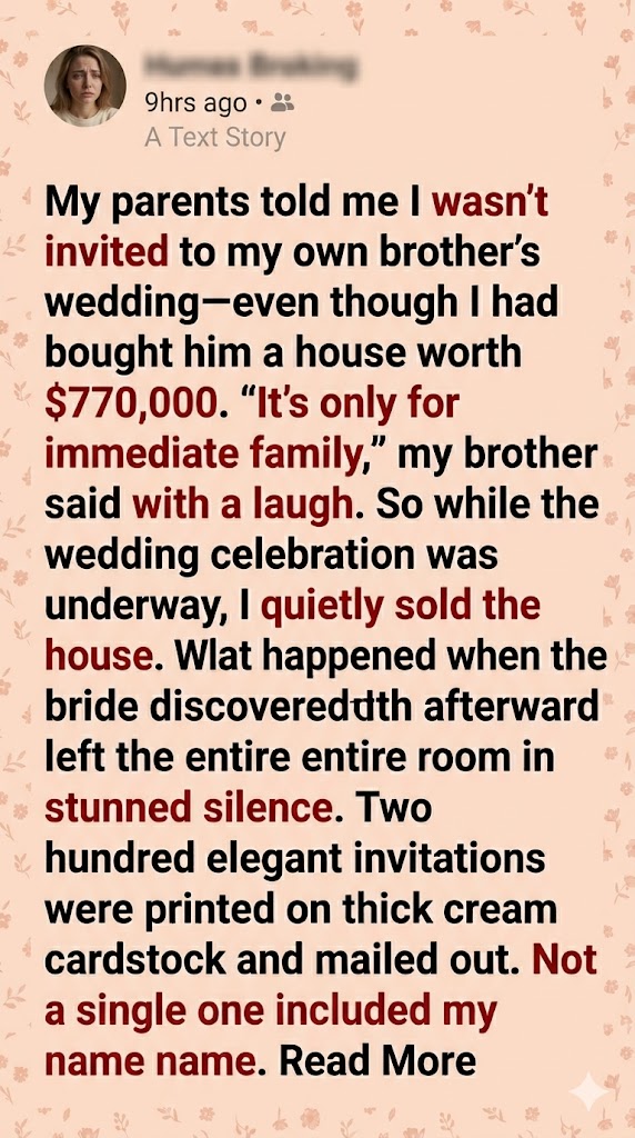My parents told me I wasn’t invited to my brother’s wedding—despite the fact that I had purchased the house he lived in, a property worth $770,000.