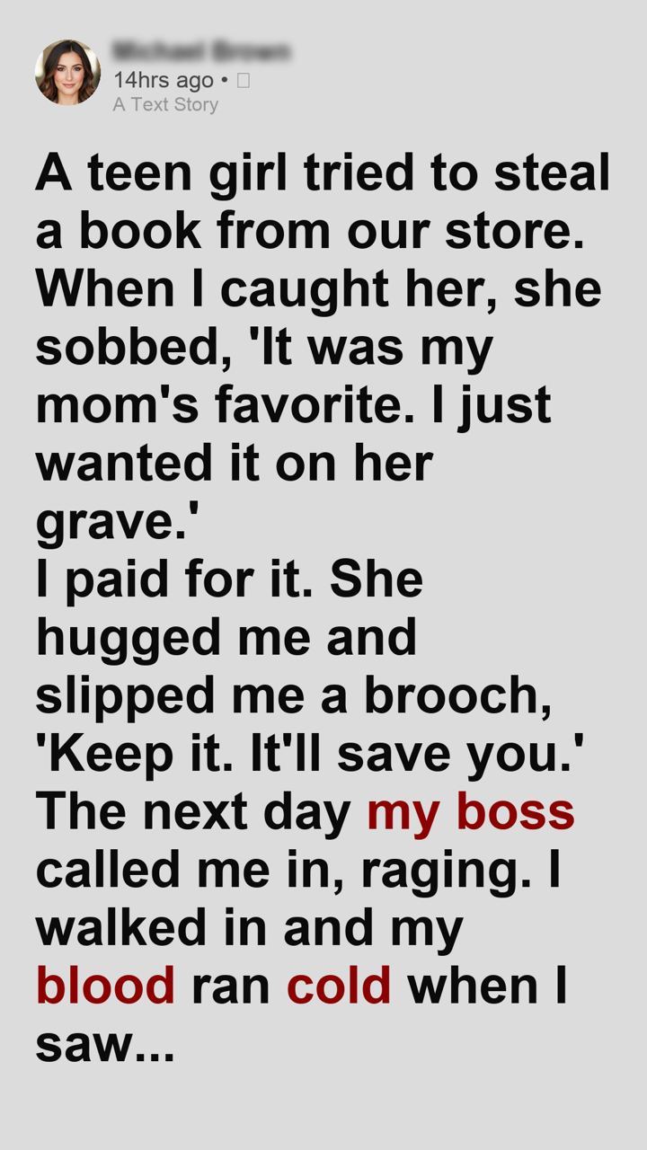 She always smiles when she sees me. That little brooch saved me, yes—but more than that, it helped heal a family. And every time I see it catch the light, I think of a girl, a book, and a moment when kindness quietly changed everything.