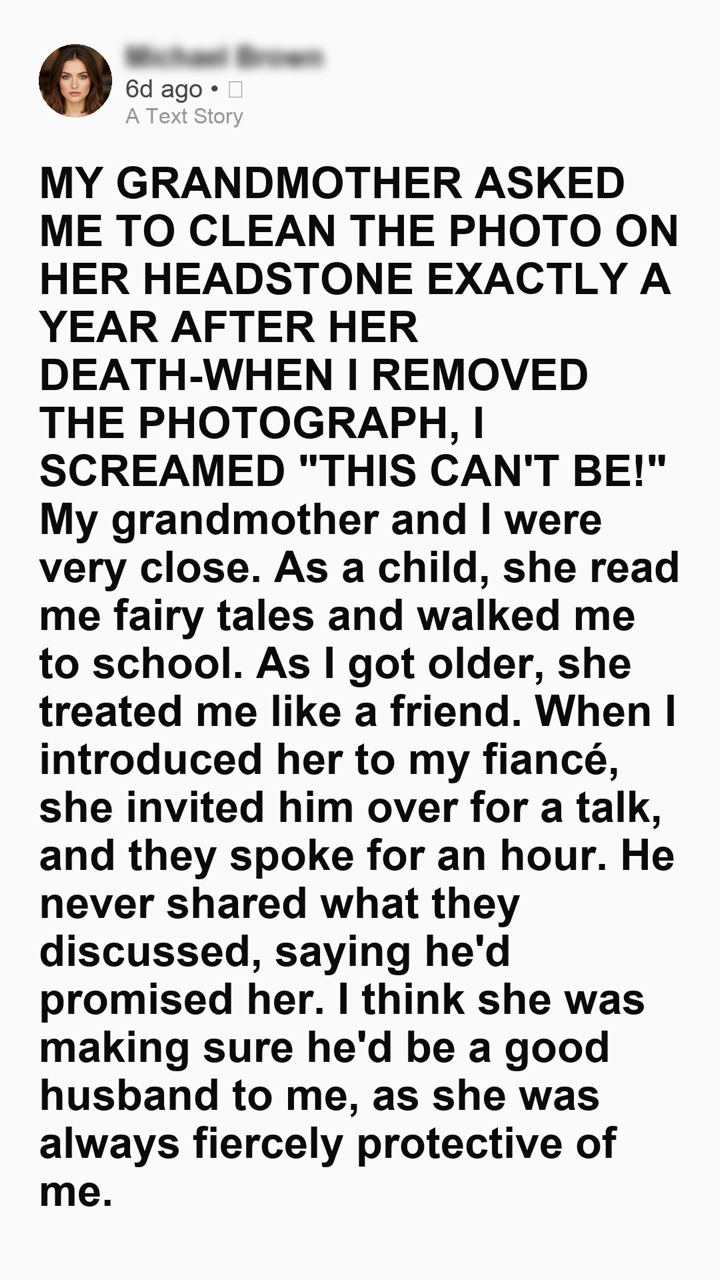 “Exactly one year after I’m gone… go to my grave. And clean the photo on my headstone.”