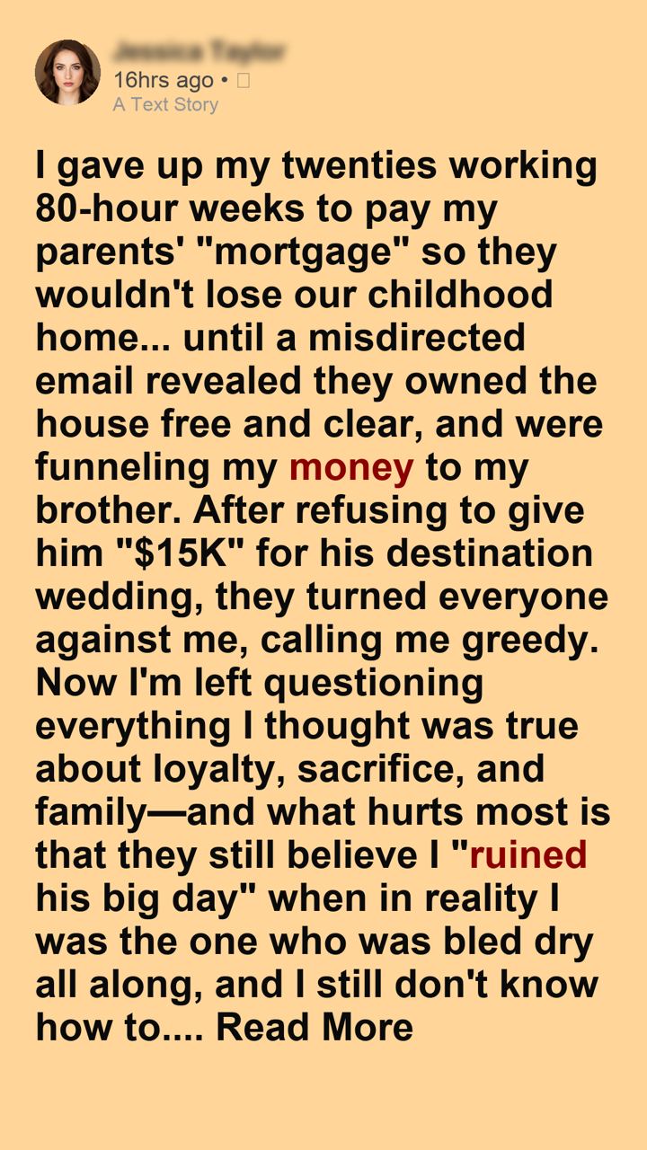 While my peers were buying their first homes or taking weekend trips, I was working double shifts. Every weekend. Every holiday. Missing birthdays and milestones. The narrative I was given was terrifying and urgent: The bank was foreclosing. Our childhood home was going to be taken. My parents would be out on the street.