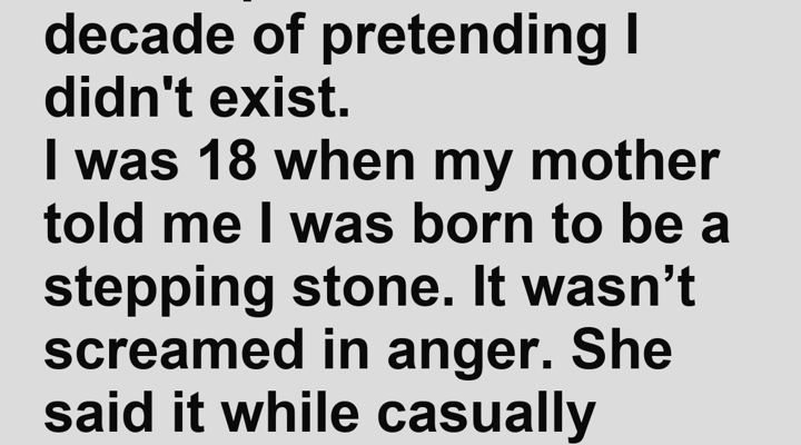 I was 18 when my mother told me I was born to be a stepping stone. It wasn’t screamed in anger. She said it while casually pouring her morning coffee, like it was a universal fact. “Mia is the star,” she said, stirring her cup. “You’re the stage. Don’t confuse the two.”