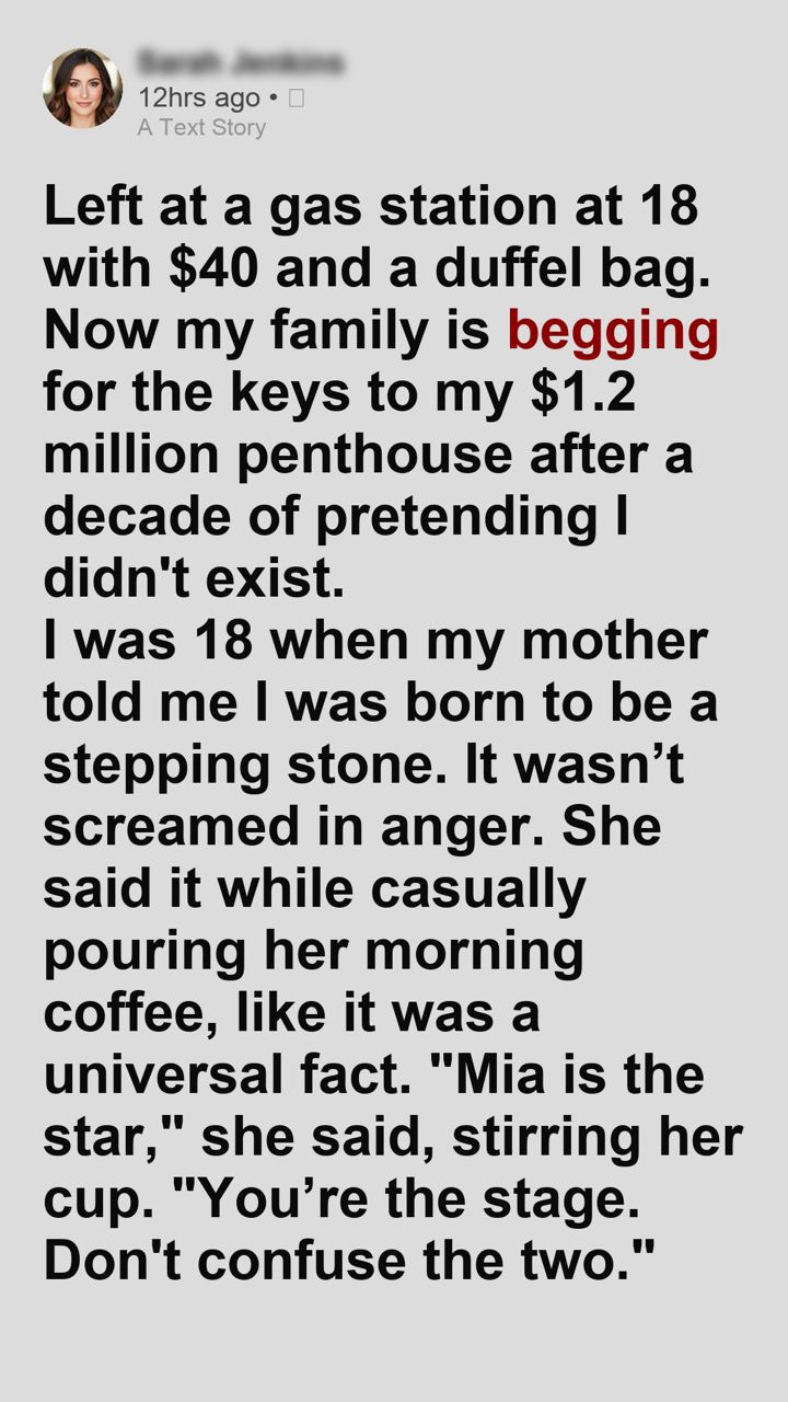 Left at a gas station at 18 with $40 and a duffel bag. Now my family is begging for the keys to my $1.2 million penthouse after a decade of pretending I didn’t exist.