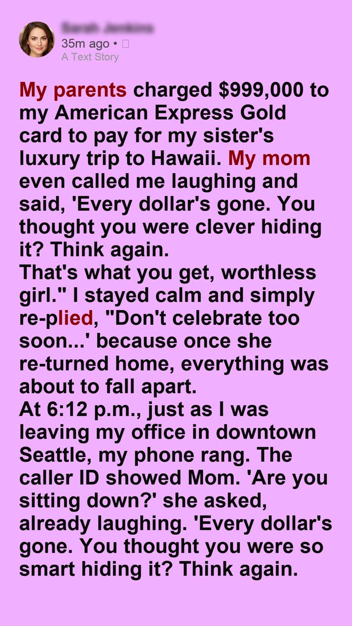 My parents maxed out my AmEx for my sister’s luxury trip—then called laughing… until everything collapsed
