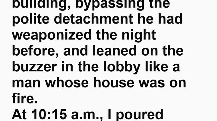 I know this because he didn’t call. He didn’t text. He drove directly to my building, bypassing the polite detachment he had weaponized the night before, and leaned on the buzzer in the lobby like a man whose house was on fire.