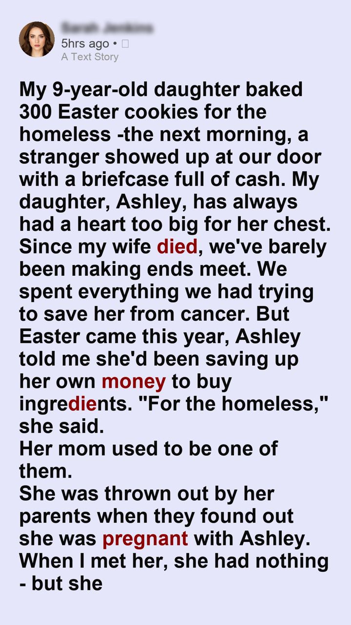 My 9-year-old daughter baked 300 Easter cookies for the homeless, and the next morning, a stranger showed up at our door with a briefcase full of cash.