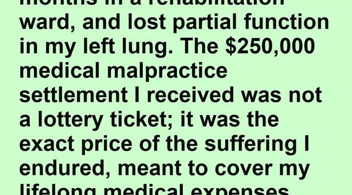 Two years ago, a catastrophic misdiagnosis led to a severe blood infection that nearly cost me my life. I spent a month in a coma, three months in a rehabilitation ward, and lost partial function in my left lung. The $250,000 medical malpractice settlement I received was not a lottery ticket; it was the exact price of the suffering I endured, meant to cover my lifelong medical expenses.