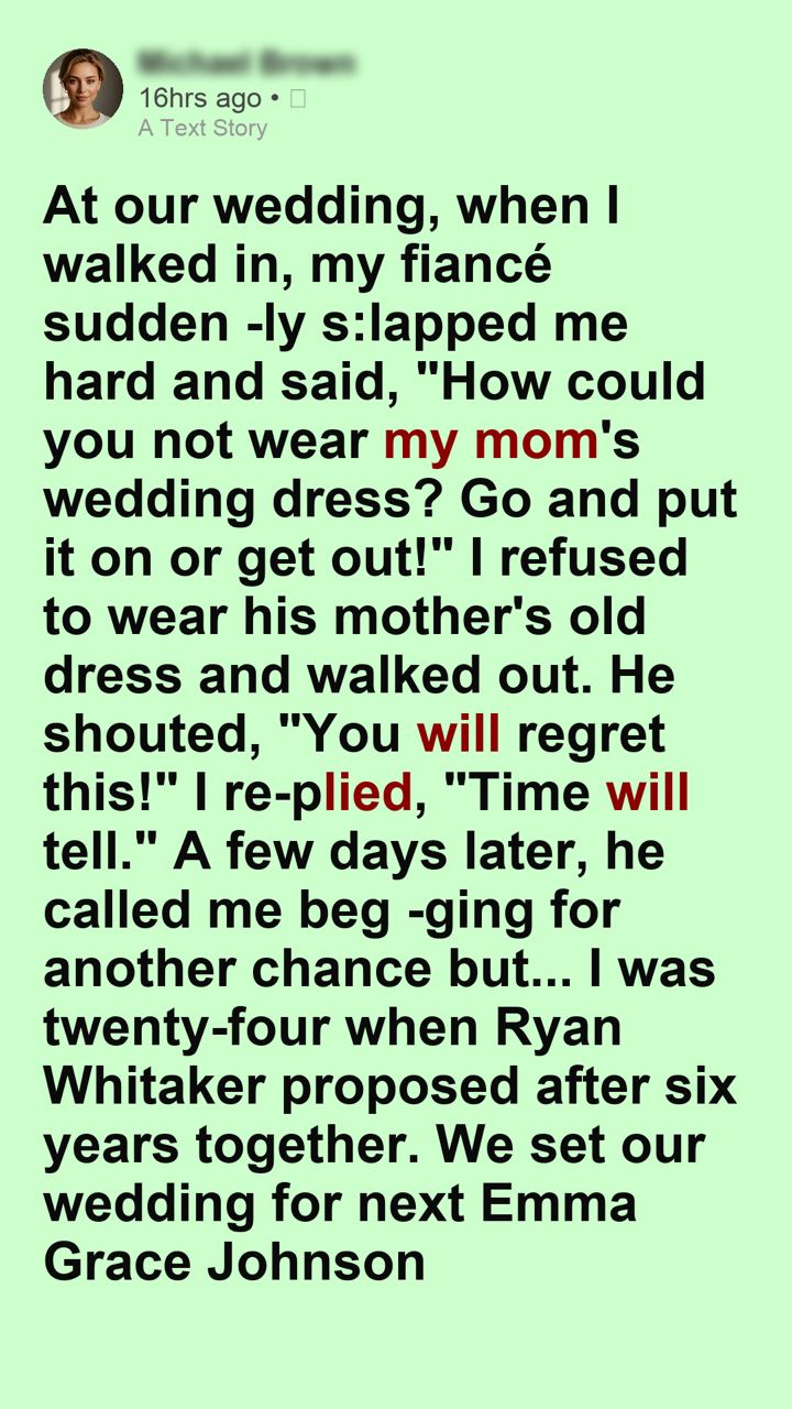 The next morning, Diane’s texts flooded in: liar, selfish, gold digger. Ryan read them and shrugged. “Just apologize. Wear the dress. Make peace.”